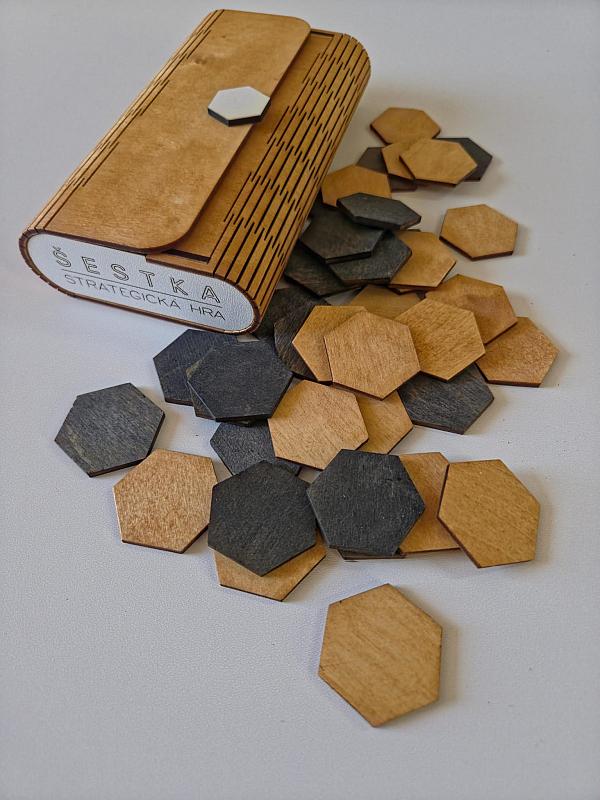 Objevte originální strategickou hru Šestka, která spojuje krásu dřeva s napětím při skládání vítězných tvarů! Tato stolní hra pro 2 hráče je vyrobena z kvalitní překližky a uložena v designové dřevěné krabičce na magnetek, takže je ideální nejen na doma, ale i na cesty. Kompaktní a praktická krabička obsahuje ručně vyrobené dřevěné dílky ve tvaru šestiúhelníků, které lákají k dotyku a vybízejí k taktice. Jednoduchá pravidla, chytrá strategie – vaším cílem je poskládat vítězný tvar dříve, než soupeř. Každá partie je jiná a napínavá až do posledního tahu. Skvělý dárek – originální hra, která spojuje zábavu, design a řemeslné zpracování. Hra Šestka je dokonalým spojením minimalismu, krásy přírodního materiálu a chytré zábavy.