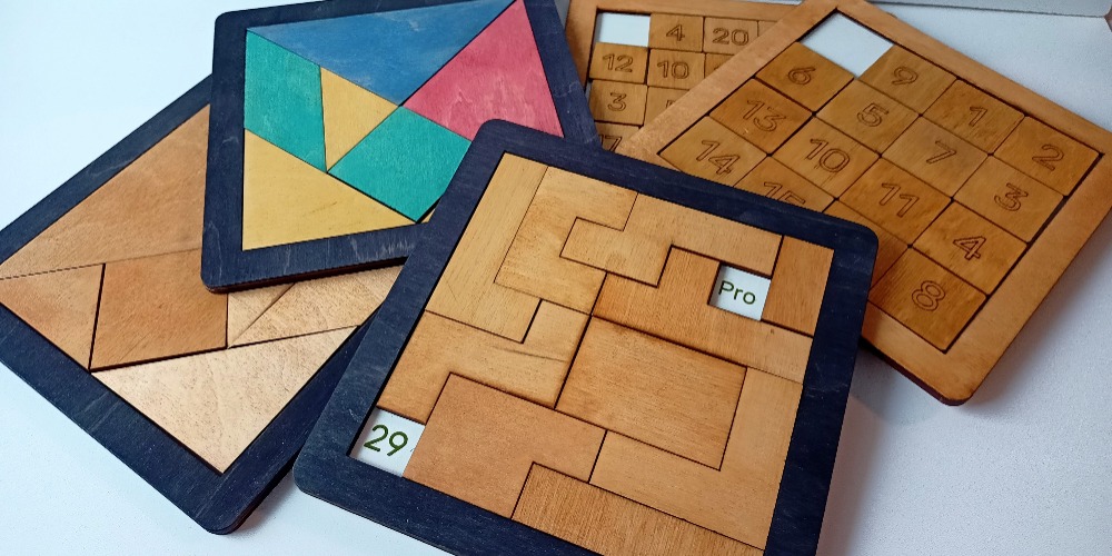 Sada malých deskových her v jednom balení vás zaručeně zabaví na dlouhou dobu. 3 hry, 5 desek a 2 stojánky v bytelné dřevěné krabici, kterou můžete vzít sebou na cesty. Balení obsahuje tyto hry: puzzle kalendář, dvě desky číselného hlavolamu v lehčí i těžší verzi a tangram puzzle s padesáti obrázky na dvou deskách. Pravidla najdete na zadní straně i na víku krabice.